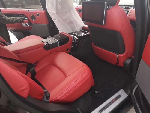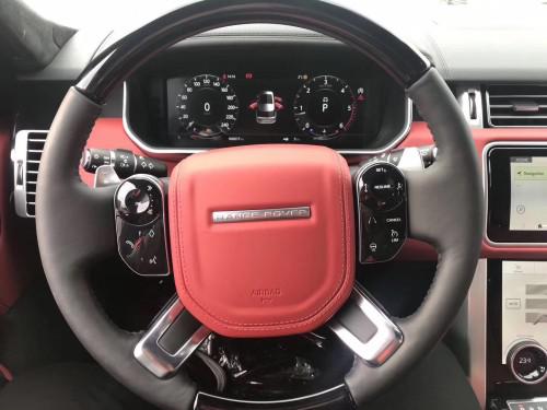 19款路虎揽胜创世加长主要配置介绍创世包(商务座椅、前排座椅24项调节、前后加热和通风、带按摩功能、滑动式全景天窗带电动遮阳帘、侧进气口、矩阵式像素LED头灯带大灯清洗、前后雾灯、825W音响、鹿皮顶、全地形控制、2代地形、环境氛围灯、环影、无钥匙进入、电吸门、电尾门、隔热挡风玻璃、自动调光后视镜、备胎、侧窗电动遮阳帘、12.3寸TFT仪器显示、Wi-Fi热点、高级脚垫、4区空调、10寸后娱、DVD播放机)抬显、雷达测距、并道、前冰箱 、21轮、10.2寸屏后座娱乐系统 、后排商务座椅 、24向调节前排空调座椅、黑钢琴漆内饰 黑色内顶 加热方向盘 前后通风加热座椅