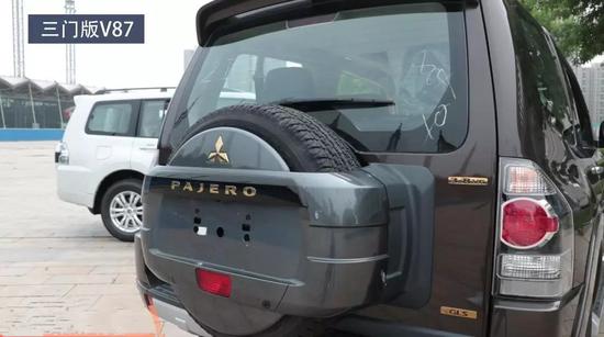我们先说第一个,2018款帕杰罗配置有何变化?其实变化只有一项,就是顶配型号增加了金色徽标套件。我们这两台都是2018款顶配,以这台三门版V87为例,它的中网徽标、机盖立标、轮圈中心徽标、尾门上的排量标,以及备胎罩上的徽标和大字母,全都变为了金色。
