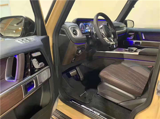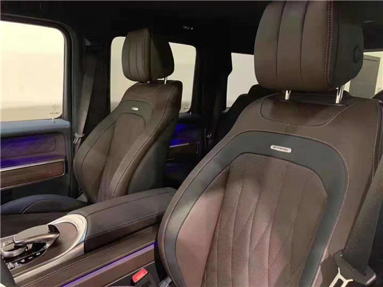 奔驰G63与前代车型相比,标配新式仪表盘和最先进的COMAND APS NTG 4.5驾驶室管理和数据系统。还配备了带彩色TFT显示屏的AMG仪表盘、AMG主菜单和单独的挡位显示器以及采用白色照明的AMG门槛。全新进口奔驰G63AMG采用了全黑的内饰配色,间中点缀的银色镀铬装饰显得相当精致。奔驰G63AMG精选皮革搭配多疤胡桃木木饰的装饰风格彰显了顶级经典越野车的风采。奔驰G63AMG进口SUV豪车内饰设计更具时代感也更加豪华。新款G63AMG独立的液晶显示屏如同奔驰A等新车型一样,被立在中控台上方,这样更加方便阅读信息。大多数奔驰的电子系统都出现在这个全新的豪华内厢里,包括COMAND和HD卫星导航系统。