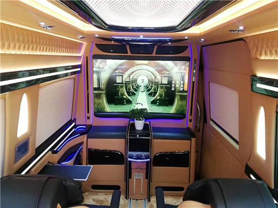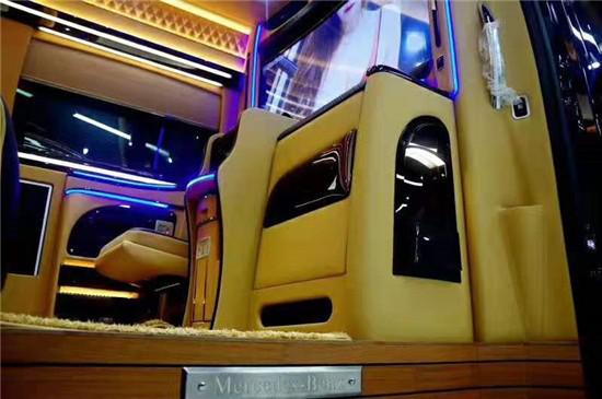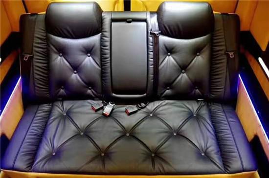 奔驰斯宾特房车星耀B+前后车舱依旧是全隔断设计,可使用前后舱对讲系统通讯交流,并各自配备独立的空调控制系统;整车纯手工皮革包覆、进口麂皮绒包覆车顶棚,奢华级LED顶灯、氛围灯设置,游艇柚木地板铺设车舱地面;后舱隔断层19寸曲面液晶电视、哈曼卡顿+JBL音响系统配备,影视娱乐视听享受仿如星级影院。