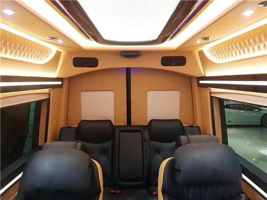 高端舒适的内部空间,贵宾舱共5+2座设计,中排独立航空多功能按摩座椅与吧台展开的座椅可形成对坐的模式,后三排的座椅更可惬意的平躺成大床,各种姿势随意切换。商务出行、宾客接待、家庭出游等,斯宾特房车让您尊享最舒适的旅程。
