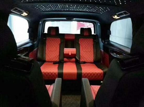 整车配置清单:阿尔坎塔拉鹿皮车顶(加全景天窗),220v电源接口USB。多功能连接口,前后舱独立双空调系统,乘客舱空调独立控制系统,GPS全球卫星导航系统带倒车影像,集成多功能物理按键控制,贵宾舱车载压缩机大冰箱(可制冰),19寸迈巴赫S600轮毂,乘客舱高级定制羊绒地毯,PullMan定制电动窗帘,全车岑木装饰,前排PullMan隐藏座椅,PullMan定制迈巴赫座椅,JBL+柏林之声音响控制系统,隐藏式密码保险箱,Apple娱乐系统(可同屏),PullMan定制万国时钟,全车Nappa真皮包裹,PullMan定制三段超薄隔断层系统。
