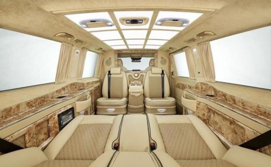 巴博斯V250最后排有一项神秘又实用的配置。那就是后排除了正常容纳三名乘客非常宽松的乘坐之外,还能将其完全放平,形成一张可供临时休息的旅行床。在乘坐性方面,这款奔驰V250巴博斯改装的版本依旧延续了经典的7座式格局,2驾驶座+2航空座椅+3连电动沙发床的设计,主副驾驶配备后台板以提供旅途中必要的置物小桌的需求;中间属集成了旋转电动、通风加热按摩等8项舒适调节的总裁座椅,后排可倒放平躺的双人床足以缓解旅途疲倦。