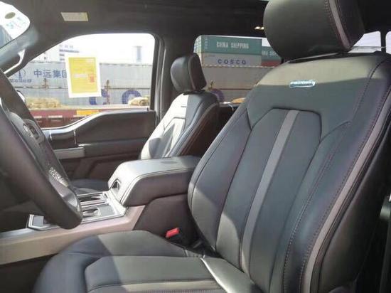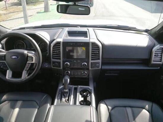 新款F150它的表面颇具动感,内饰奢华,配置富厚,同时兼具跑车的动力机能、越野车的全地形制霸本领和豪华轿车的乘坐恬静性,并且它的改装空间也很大。车内配备标准独特的皮革和布艺装饰的座椅,驾驶员侧的电动十向调节。这些座椅同时具备记忆功能。中央控制区搭配了触控式显示屏,其下方则是多媒体控制区及空调面板,采用旋钮+物理按键的组合。中控功能区域可分为三个小控制区,最上端为音响控制及导航控制,中间为收音机调节控制,最低端为空调及座椅加热控制。在内部空间的庞大基础上,福特也提供了非常具有舒适性与服务性的内饰配置。另外,新车还配备了一块大尺寸的全景天窗。