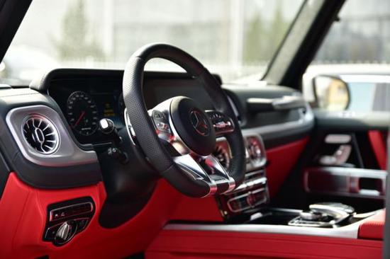 19款全新G63内饰方面,新G63保留了新G500的整体设计,除配色差异外,新车还换装了全新造型的平底式AMG运动方向盘,其两侧配以打孔皮质包裹,下部镀铬装饰的造型也与新G 500明显不同,看上去十分战斗。此外,全液晶仪表盘+中控大屏的双12.3英寸屏幕设计在新车上也没有缺席,营造出了浓郁的科技感。