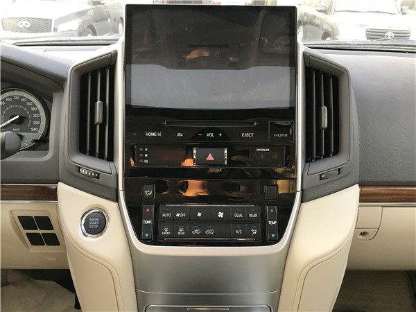 2018款兰德酷路泽4000原装内饰图片:丰田酷路泽4000操控台没有过于繁杂的操控按钮,多功能方向盘方便了驾驶员的操控。仪表盘、方向盘和排挡等位置均配以桃木装点,尽显豪华质感。中控台换成了具有磨沙手感的金属板件,增强了内饰的质感。上方为多功能显示屏,中间为音响控制系统,左右两侧为空调 出风口和空调温度控制按键