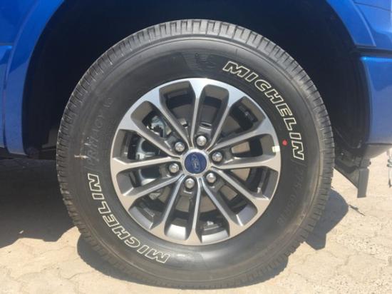 18款福特F150 3.5T的轮毂最为独特,新车最新的轮毂是把可靠的传统轮毂和防脱圈的轮毂结合起来了。这款防脱圈轮毂可以保证在轮胎气压较低的情况下,轮胎不会脱离轮毂,因为我们去沙漠的时候往往要降低胎压。并且它从传统轮毂转换到防托圈只需要客户拔去标准螺栓,从其常规位置卸下轮胎然后从可锁位置重新安装轮胎,再装防脱圈螺栓即可。