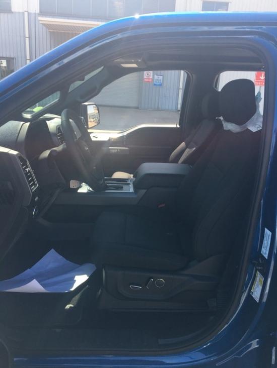 新款F150它的表面颇具动感,内饰奢华,配置富厚,同时兼具跑车的动力机能、越野车的全地形制霸本领和豪华轿车的乘坐恬静性,并且它的改装空间也很大。车内配备标准独特的皮革和布艺装饰的座椅,驾驶员侧的电动十向调节。这些座椅同时具备记忆功能。中央控制区搭配了触控式显示屏,其下方则是多媒体控制区及空调面板,采用旋钮+物理按键的组合。中控功能区域可分为三个小控制区,最上端为音响控制及导航控制,中间为收音机调节控制,最低端为空调及座椅加热控制。在内部空间的庞大基础上,福特也提供了非常具有舒适性与服务性的内饰配置。另外,新车还配备了一块大尺寸的全景天窗。