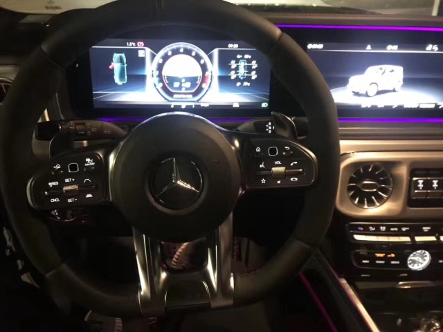 2019款奔驰G63的内饰极具现代感,中控台出风口、扬声器指示灯的造型与车灯相得益彰,而两块12.3英寸的显示器则让整个内饰氛围升华,还提供了经典、运动、渐进三种模式可选,舒适、科技配置也让人眼花缭乱,包含:驾驶员座椅记忆、前后座加热、多角度调节、座椅按摩(Active Multicontour座椅套装)、AMG多功能方向盘(可控制自适应巡航、语音控制、多媒体控制等)。
