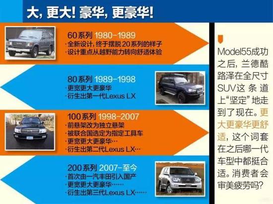 兰德酷路泽是丰田最重要的越野车型,从1951年至今,67年的风风雨雨造就了丰田兰德酷路泽的赫赫威名,凭借着强大的动力、可靠的四驱系统以及不俗的越野能力,在各种崎岖路段都能找到兰德酷路泽的身影。时至今日,它早已经不是单纯干粗活的工具车了,取而代之的是拥有豪华、舒适、运动以及越野能力的全路况车型,皮实耐用以及不挑油的特性使其成为了一代传奇。在我国广阔的西北,依然有大量前代车型谨守职责,活跃在祖国的大江南北。购车 13910067572 北京老吕。