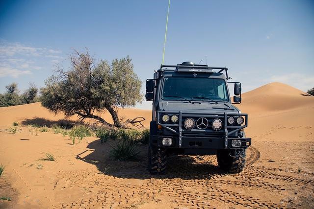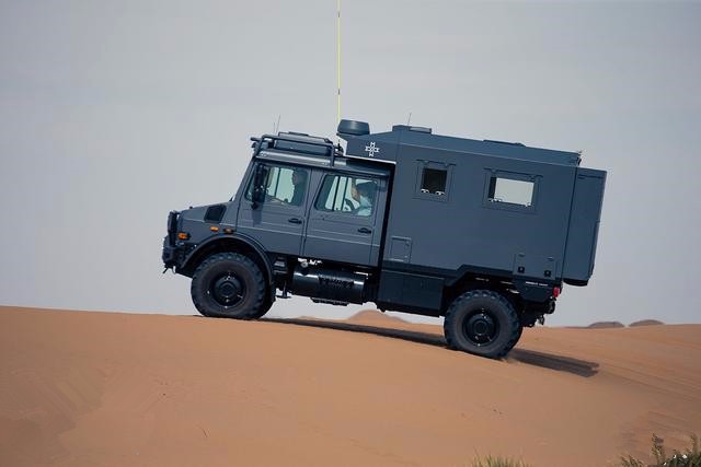 去的地方,坦克也过不去。之所以有这么强的越野能力,首先是动力充沛,高扭矩为整车越障和攀爬提供强劲动力支撑。其次底盘为分时四驱,配备前、后及桥间差速锁,更好的适应了不同的车辆行驶工况,保证车辆动力性与工况的合理匹配。最后底盘断开桥和驱动桥的设计理念外加高强螺旋弹簧和筒式减震器,提升驾乘舒适性并使车辆越障扭幅高达30%。当车辆行驶在水中或泥泞路况时,标准版本的乌尼莫克U4000可提供0.8米的涉水深度,通过选装,涉水深度可达到1.2米。