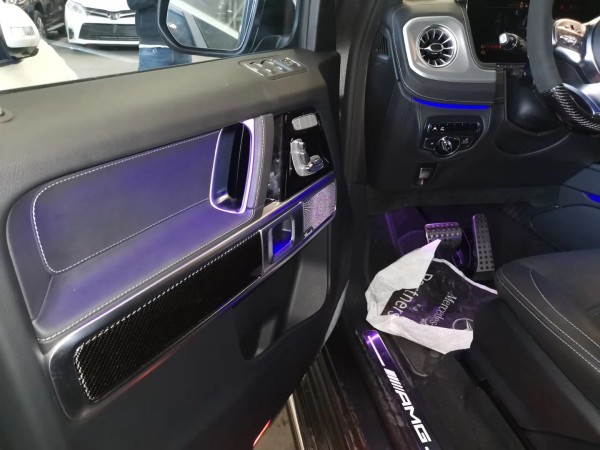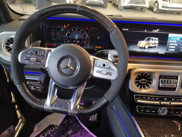 全新19款G63内饰是这次改款改动比较大的,新G63保留了新G500的整体设计,除颜色有差别之外,新车还换装了全新造型的平底式AMG运动方向盘手感极佳,其两侧配以打孔皮质包裹来增加摩擦力,下部镀铬装饰的造型也与新G 500明显不同,具有独特的质感。全液晶仪表盘+中控大屏的双12.3英寸屏幕设计也在这款车上完美的展现了它的科技感,整个内饰给人豪华绚丽的窒息感。