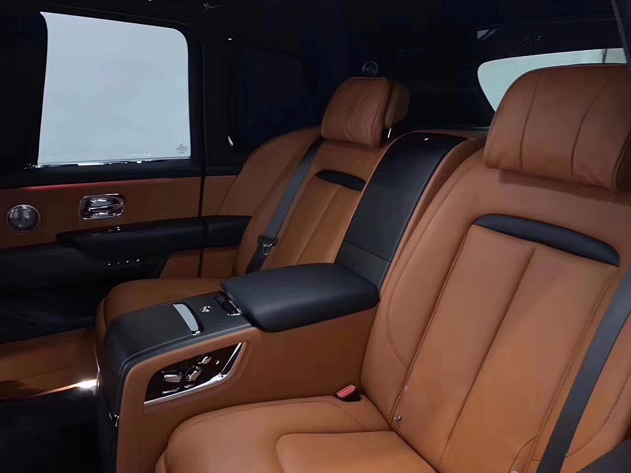 2019款劳斯莱斯库里南四座版的后排控制台,与前部是断开的,在狭窄的环境停车,可让后排乘客选择任意一侧下车,后排剧院式座椅比前排更高,配合宽敞的车窗和顶级全景天窗,使后排乘客视野更为广阔。