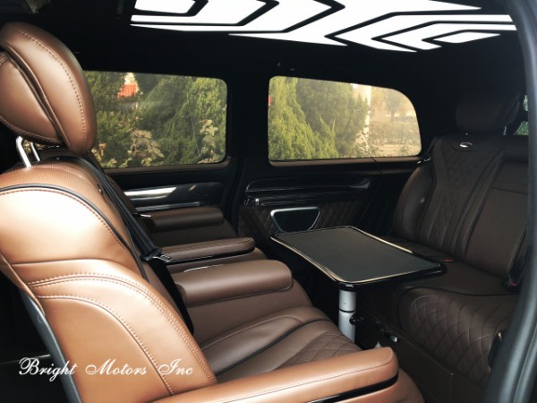 私人订制配置:17寸涂装五付轮毂(P225/45 R17)、NAPPA皮革、手缝双线仪表台、Turbo双排气系统、定制空气扰流组件、麂皮绒内饰、车顶行李架、车载吸顶15.6寸环绕影音系统(可同屏显示)、奔驰镜面中网、头等舱8项智能座椅(含加热、通风、按摩、旋转、USB)、侧边进气鱼鳃、12.1英寸超大导航系统(含手机互联)、日间行车灯系统、车载充电电源220V、新款组合头灯、加强车身防撞系统、高级礼宾双侧电动滑门;前、后独立后空调、车内氛围灯系统;外观镀铬装饰、镀铬踏板(带氛围灯);全车窗帘、车载小桌板;双电瓶、外接电源系统; 太空星空车顶(元宝星空顶);全车碳纤内饰装饰;车载压缩机冰箱、室内装饰脚踏;正副驾驶电动座椅、副驾驶BOSS按键。