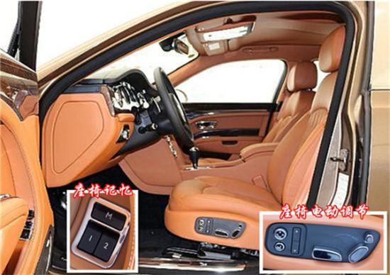 宾利慕尚加长版在真皮的包裹与工匠们精心建造下,前排座椅有着极佳的舒服性,电动调理、记忆模式、座椅加热/透风、座椅按摩等配置堪称是包罗万象,而且主驾驶和副驾驶维持着相同的配置。