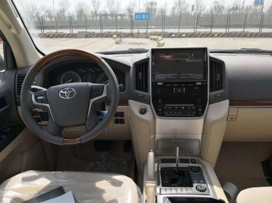 2018款丰田酷路泽4600整个操控区域色调为深色系,仪表盘,方向盘和排挡等位置均配以桃木装饰,尽显豪华质感。2018款丰田酷路泽4600不但有DND导航,这款车的倒车影像还可以显示在内后视镜上,中央扶手箱还装备了冷藏箱,这些都与中规版的车型是有所不同的。