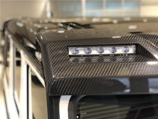 奔驰G500 4x4²看上去就像是G63 AMG 6x6的四轮越野版。新车车顶增加了可拆卸的碳纤维扰流板,并在扰流板两侧融入了LED灯光系统。