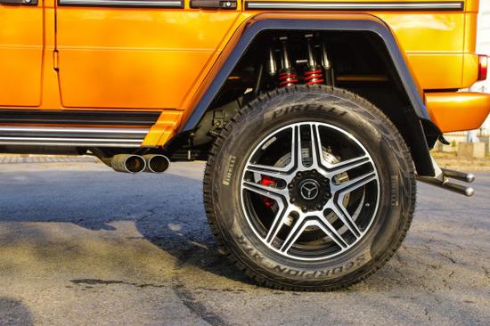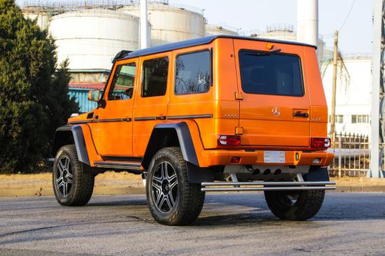 先说说G5004X42的由来,奔驰曾有一款G63 6X6皮卡,是G级、AMG和乌尼莫克的结合,凭借夸张的6轮驱动、经典的门式驱动和6秒多的百公里加速成绩,成为了最强悍的皮卡之一,但售价也高达1000万。为了亲民一些,奔驰推出了一款G500和G63 6X6皮卡结合的产物,也就是G500 4X4²,它其实就是G63 6x6的四轮低功率版本,比6x6少了一根后轴、两个车轮、两把差速锁以及AMG发动机,但售价也只是G63 6x6的1/3,即便这样,价格也不是一般人能够接受的,但比G63 6x6还是便宜了不少。