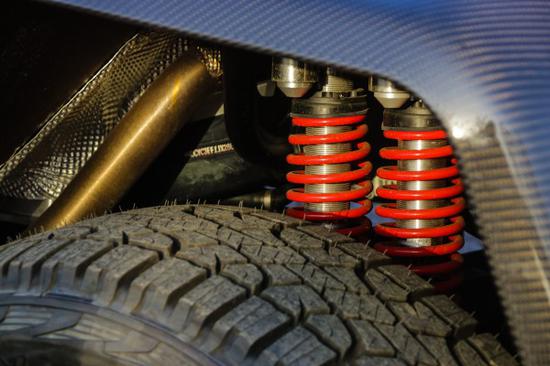 双避震+双弹簧悬架,4X4²拥有两根减震筒,一根是固定的,而另一根则是可调,这样一来就能通过驾驶模式选择,实现从运动到舒适模式的切换。