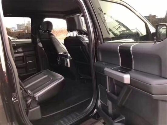 内饰方面:19款福特猛禽F150内饰采用独特的中控台和门饰板面漆和真皮包裹的方向盘。中控台部分辅以银色饰板装饰,六指针仪表盘的设计有些后工业时代的复古风格。采用带电冷热功能的可记忆式皮革座椅,头枕四向可调,搭配铝饰条和黑色钢琴烤漆内饰。可电动升降的后窗带隔板和电热除霜功能。后排的座位三个过分宽敞,乘坐四个身材高大的乘客绝对没问题。