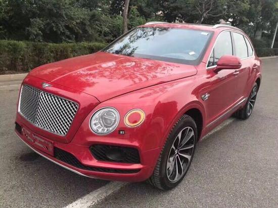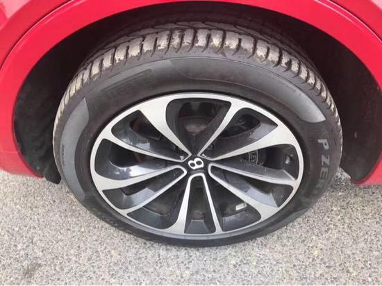 实拍图为2017款宾利添越6.0T W12 五座版,其外观颜色为中国红,即使在港口,此类颜色的宾利添越也极为少数。同时,实拍车型在外观配置上,也极为丰富,比如21寸轮毂、车顶行李架、矩阵式LED大灯等。