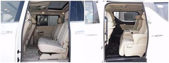 而在这个级别的MPV,除了外观是一个非常值得参考的因素,第二排座椅尤其重要,相信这一点也不用我过多解释,而实际来对比埃尔法和贵士的第二排座椅,可以看到,两款车都采用了独立座椅的设计,但在档次感上,我认为贵士顶多算得上是二等座,而埃尔法看起来则像是头等舱,当然这只是视觉感受,但其实贵士的第二排座椅还是相当舒服的,毕竟“日产沙发厂”并不是浪得虚名,但总感觉看起来不够气派,这其实是一个扣分大项。而埃尔法采用的是航空旗舰座椅,素有陆地头等舱之称,单论价格,埃尔法的二排座椅拆下每个都价值小十万,豪华程度可见不一般。