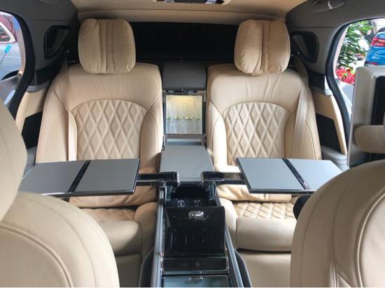 18款宾利慕尚长轴距版车身长宽高为5825*2208*1541mm,轴距达3516mm,相比于现款车型尺寸全面升级。内部充分利用额外的后排空间,宾利研发了航空式电子腿托,组装在两个后排座椅的基座上。腿托可以向外延伸和旋转,为后排乘客提供直立、放松、倾斜等不同座椅位置的乘坐体验。在慕尚长轴距版的两个后排座椅之间,有一个控制台,还提供各种实用功能,例如USB接口、笔架、杯托和玻璃盖储存区。