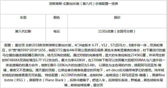 幻影--劳斯莱斯旗舰车型,作为历史最悠久的车型,它一直诠释着对至臻完美的不懈追求。新车的外观在延续经典方正轮廓的同时,也加入了更多富含科技感的配置和设计元素。全新铝制奢华架构打造,车身整备质量降低,刚性也增强了30%。