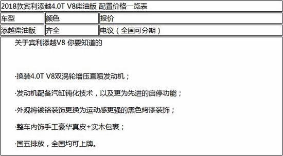 2019款柴油添越搭载4.0T V8发动机和奥迪SQ7上的是同一台,最大输出功率435马力,峰值扭矩900牛·米,0-100km/h加速时间为4.8秒,极速可达270km/h。这台柴油发动机加入电动涡轮技术,能够更好的解决增压发动机的迟滞问题。