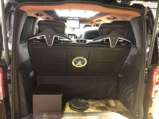 配置::17寸铝合金多幅轮毂,Turbo双排气系统、定制空气扰流组件,车顶行李架,奔驰镜面中网,侧边进气鱼鳃,日间行车灯系统,新款组合头灯,高级礼宾双侧电动滑门,外观镀铬装饰,加强车身防撞系统,双电瓶,外接电源系统,全车碳纤维内饰,全车内部手感漆套件,NAPPA皮革,手缝双线仪表台,鹿皮绒内饰,车载吸顶15.6寸环绕音响系统(可投屏显示)头等舱8项智能座椅(含加热通风按摩旋转usb)12.1寸超大导航系统(含手机互联)车载充电电源220V,阿尔卑斯牛毛地毯,前后独立空调,车内氛围灯系统,镀铬踏板带氛围灯,全车窗帘,车载小桌板,太空星空车顶(元宝星空顶)车载冰箱,正副电动座椅,副驾驶老板按键。