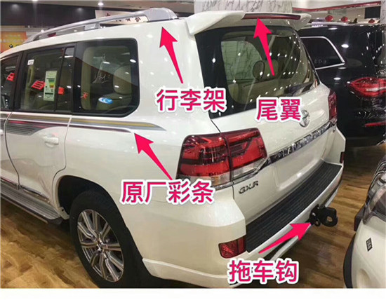 丰田酷路泽4000乞丐版现车配置:冰箱,定速巡航,多功能方向盘,镀铬黑色隔栅,多地形反馈,五座,17寸铁轮,电子制动力分配,刹车辅助,车辆稳定性控制,牵引力控制,爬坡辅助,两气,高位刹车灯,电动彩色后视镜,车身同色门把手,油箱开启键,蠕动模式,车身稳定系统,布艺座椅,智能卡,一键式启动,后雾灯,胎压,脱钩,底挂,脚垫,购车咨询13910067572 北京老吕。