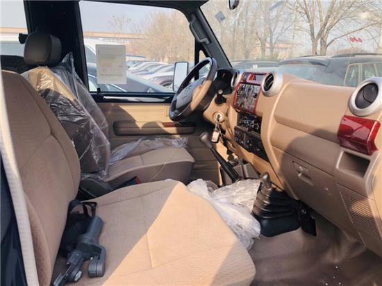外观方面作为一款“原始”的越野车,几乎没有什么科技含量,这从中控台上的一些配置就可以看出,卡带播放器如今已是非常的稀有,拨杆式的空调调节也并不多见,唯一的科技产物应该是蓝牙电话系统吧。