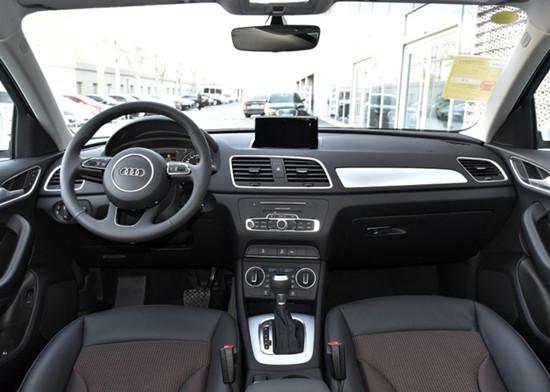 18款奥迪Q3内饰方面:全新奥迪Q3具有张扬而个性的内饰设计,彰显纯粹的高档品质。一道棱线从司机侧窗台起始,绕过仪表板,一直延伸至副司机侧车门窗台,营造出一 种被环绕的安全感和尊贵感。精品木质及铝制内饰条,在内舱LED照明灯下更加熠熠生辉。可选择范围多达四种,包括:蛇纹铝饰条、三维铝饰条、黑棕色松木饰 条、微金属饰条。宽大的中控台配合深色木质饰板简洁大气。