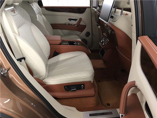 19款宾利添越欧版车内空间 采用独立四座,,后排座椅与前排座椅具有相同的调节功能,其乘坐感、包裹感也与前排座椅保持相同规格,这一点在所有豪华SUV中独一无二。添越的尾门采用电动开 启,并且在行李厢中设置了功能丰富的滑动式导轨,既可用于固定、分割行李,也可以拉出软垫作为休息、乘坐的平台,充分体现了宾利SUV车型崇尚的生活方式。