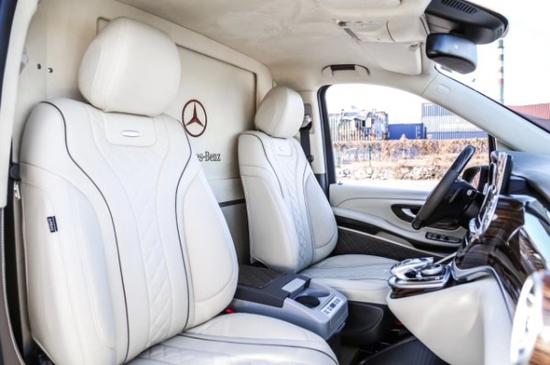 首先是一开门您回发现这款奔驰V260采用的是前后排隔断的处理方式,更好的为大家提供隐秘性并且大大提升了后排的娱乐体验。