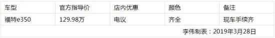 在整个中国的汽车市场中,大型商旅房车正在慢慢的崛起,在整个市场中发出属于自己的声音,无论别克、丰田、GMC、奔驰等都有着不同款式的商旅房车供选。福特也是一样,福特E350,凭借TritanTM V型8缸发动机,以及5.4L大排量,是商务房车领域动力突出的商务车型。更多优惠详情请拨打文章末尾电话