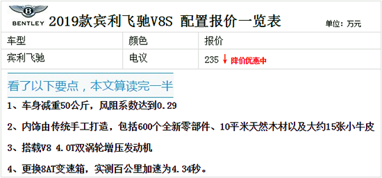 19款宾利飞驰V8S超过3米的轴距,造就了阔绰的后排空间,车主绝大多数时间都是在后排,享受阔绰的空间和类似平板电脑的10英寸屏幕。坐进去,奢华氛围让您整个人都在发光,座椅角度也可调节,对于这种高端车型来说,拥有一定的舒适度,是它最低的标准。