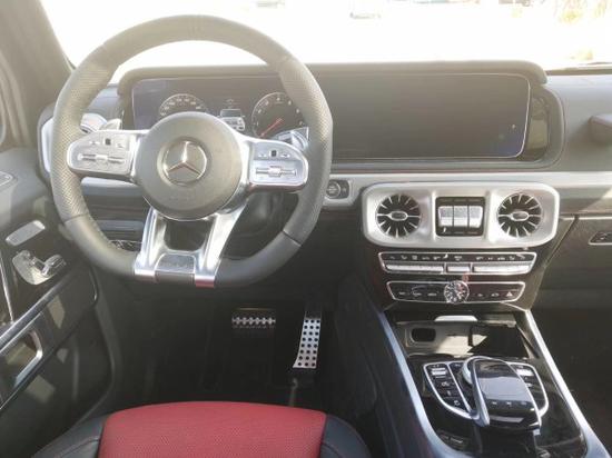 2019款全新G63内饰方面,新G63保留了新G500的整体设计,除配色差异外,新车还换装了全新造型的平底式AMG运动方向盘,其两侧配以打孔皮质包裹,下部镀铬装饰的造型也与新G 500明显不同,看上去十分战斗。此外,全液晶仪表盘+控中大屏的双12.3英寸屏幕设计在新车上也没有缺席,营造出了浓郁的科技感。