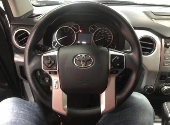 18款丰田坦途SR5TRD的内饰设计风格感觉比较熟悉,依旧是宽大的中控台搭配各种大尺寸按键、旋钮的组合,配色方面采用深灰色与浅灰色搭配为主,可以很清楚的发现驾驶员一侧的色调以浅色调为主,作为一款皮卡,坦途内饰的用料和做工明显有过于“豪放”之嫌,中控台大面积的硬塑料材质说明它还是一款实用性至上的车型。