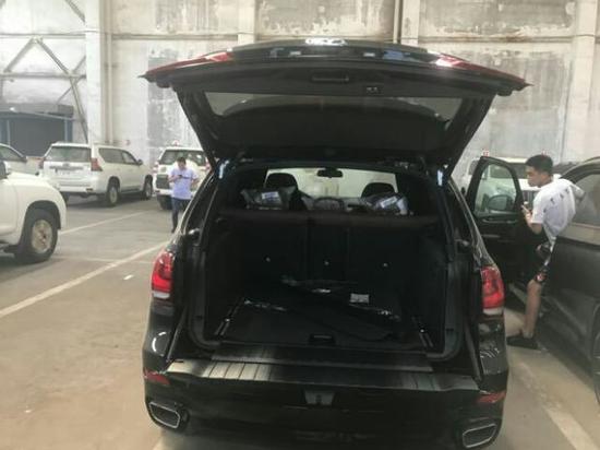 平行进口车18款宝马X5M运动版到店实拍 18款宝马X5配置:M运动包:M运动方向盘 M运动前后包围 M运动侧轮眉 M运动方形排气口 M运动座椅 M自适应悬挂标配:方形运动排气。双五辐19轮毂。多功能液晶仪表。真皮方向盘+换挡拨片。全景天窗。大灯清洗10.2触摸屏。中控拉丝铝饰条。Hi-Fi高级音响。专业导航。电动座椅。达科塔皮革。自动空调。氛围灯。倒车影像。前后雷达。双氙气大灯。定速巡航。电动尾门。行李架。丝绒地毯。吸烟包。运动变速箱(运动+模式)。防盗螺丝。备胎。三脚架。防炫目后视镜。分离网。