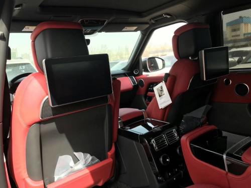 19款路虎揽胜创世加长配置介绍全部现车创世包(商务座椅,前排座椅24项调节,带按摩功能;滑动式全景天窗带电动遮阳帘;LED大灯;雾灯;825W音响;全地形控制;2代地形;环境氛围灯;环影;无钥匙进入;电吸门;电尾门;隔热挡风玻璃;侧窗电动遮阳帘;12.3寸TFT仪器显示;Wi-Fi热点;高级脚垫;4区空调;10寸后娱), 黑撞顶 前冰箱 ,21轮,10.2寸屏后座娱乐系统 ,后排商务座椅 ,24向调节前排空调座椅,钢琴漆内饰 加热方向盘 前通风加热按摩座椅,后通风加热座椅