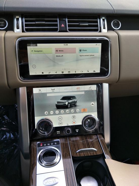 19款路虎揽胜行政中控台高档木料搭配,卫星导航系统,上下两块DVD超大显示屏,方向盘上分布着快捷按键,与老款相比方向盘上的按键也改成了触控的形式,使驾驶者更舒适的操控,充斥着满满的科技感。路虎揽胜行政中控台更宽、更精致,按键少了一半,大多数基本控制功能近在咫尺。由精美真皮和甄选实木装饰的表面干净优雅,散发出安详平静的感觉。新款路虎揽胜行政内饰一如既往的精致内敛,如同绅士。