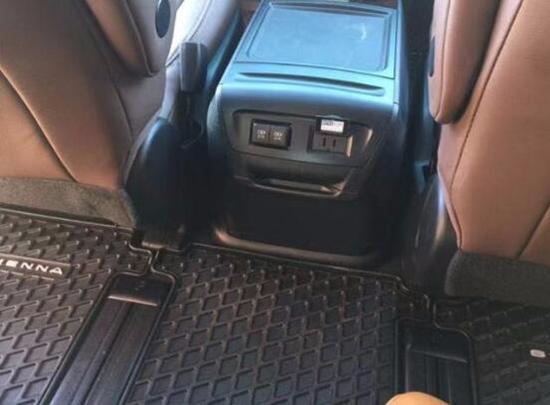 19款丰田塞纳内部空间非常大,充分发挥了MPV的优势。 座椅全部采用双色真皮,第二排座椅的腿部支撑,放倒第三排座椅,加上腿部支撑,完全变成了两张摇篮床,让长途旅行多了一份舒适。宽敞舒适后座空间,配上该车安全稳定的行驶系统,保证途中也能舒适地谈上生意