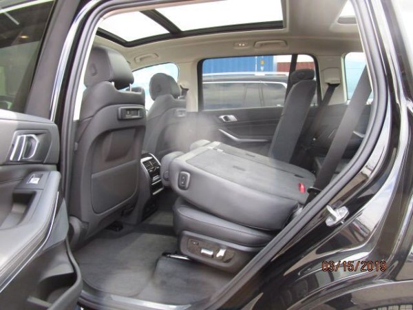 2019款美规宝马X7 3.0T 7融入最新家族式设计元素,内饰大部分区域由银色饰条及木质面板加以点缀,配备带有注意力监测的液晶仪表盘及全新的三辐式多功能方向盘,中控区域为悬浮式触控显示屏,下方为空调出风口与实体功能按键,杯架处还加入可为饮品制冷或加热的功能,换装全新的水晶电子档把。除此之外,新车还配备了Vernasca皮革内饰,四区气候控制系统及三段式全景天窗。