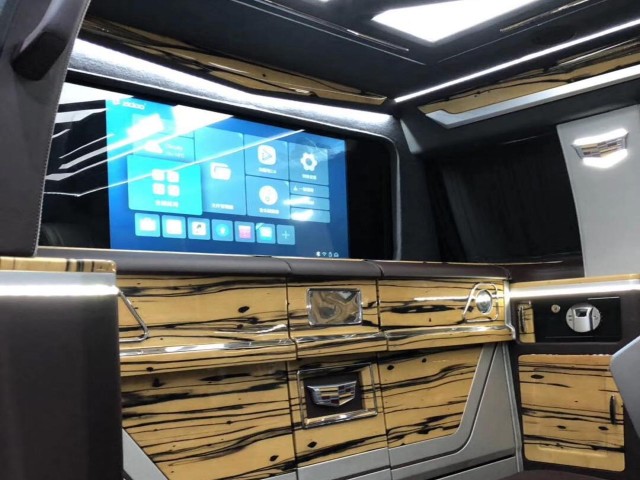 2019款凯迪拉克总统一号商务车配置:长5米98,高2米15,发动机V8,6.2排量,最新款高顶带行李架,电动脚踏板,全车VIP大包围,电动后屋门,全车隐私玻璃,车身迎宾灯及夜间地面照明,远程摇控起动,后舱全景电动大天窗,全车豪华高级进口小牛皮纯手工定制座椅,全车豪华航空仓内部装饰,全车液晶触摸屏电器控制系统,后舱电动航空按摩座椅及腿托,电动升降超清液晶电视可连网络及投屏,BOSE家庭影院式5.1声道立体环绕高级音响,自动空调及花粉过滤空气净化器,全车LED氛围灯光和电动隐藏座椅,全车网络电视DVD接收播放系统,高级游艇木地板,高级豪华隐私窗帘,全车钢琴漆豪华吧台车载冷暖温度可调冰箱,咖啡机,前后航独立双控空调系统,前后舱无线通讯电话,220V电源及外接电源,桃木多功能方向盘,无钥匙进入和一键启动系统等。