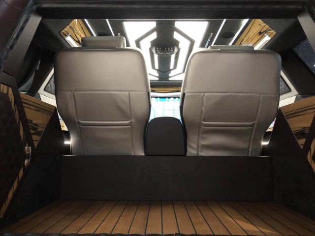 凯迪拉克总统一号商务车加长版内部布局非常精巧且奢华,科技感十足,得益于近6米的车身及超过3米的轴距,4+2座布局的内部空间依然宽大,相信大家一定会喜欢这款即商务又运动的全尺寸豪华SUV,我不知道什么身份可以坐它,我只知道坐它的都有身份。