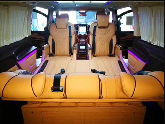 奔驰Metris麦特斯 全车柚木地板铺设,真皮座椅附带通风、加热、按摩和旋转等常备功能,调节方便操控简单,外出旅行更加舒适和享受,不在担忧坐“长途车”腰酸背痛的困扰。哦、二三排座椅后的小桌板,调节出来,放置生活饮品或食物,在旅途过程中也是一个不错的选择。