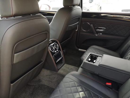 配置:红色卡钳,对比刺绣,宾利徽章刺绣,方向盘手工对比色刺绣,舒适包,穆勒包配21寸黑色机械轮,天窗,深色前后大灯,穆勒LED迎宾灯,可拆卸中控台储物盒,前后排长绒地毯,电动后排遮阳帘,前后雪茄盒烟灰缸和点烟器,钢琴黑,小冰箱,后排小桌板带化妆镜,3辐实木/真皮方向盘,ACC定速巡航,后排空调,6碟CD换碟机,倒车影像,泊车钥匙等。
