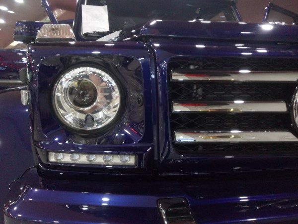 奔驰G550 4x4²在车身长度和宽度和高度4498*1958*2235mm,轴距2850,以是总体变革不大,新车在表面方面采取新的活动套件,前保险杠造型有所调整,格栅面积更大,大灯方面仍然是远近光一体的氙气大灯。
