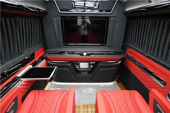 大众T6房车中部隔断层常规的生活吧台设计、上面的设备有蓝光DVD影碟机、储物盒、咖啡机,杯柜酒柜等等,整体的内饰装潢十分简约大气,上部超大屏高清液晶电视,支持本地放映和卫星信号接受,自身还可通过调节电视玄关自由升降。前后车舱电子通讯系统联络,后部车舱奢华级顶灯照明,四周LED氛围灯组、阅读灯组。